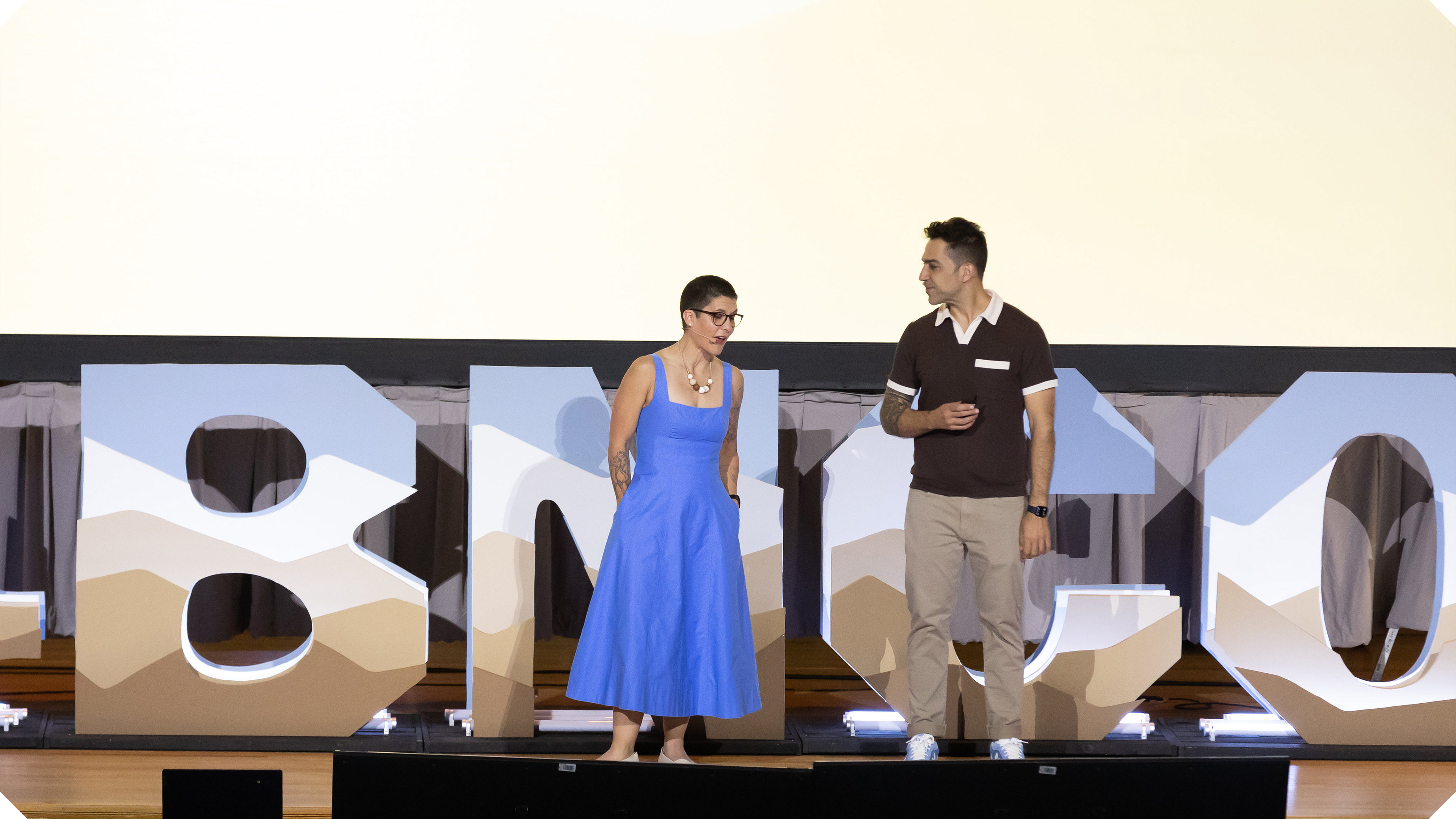 For the third year in a row, GEO designed the opening titles and speaker introductions based on music custom-made by Norbert Herber, who is also back for another round of us providing cryptic art direction that he somehow manages to translate into sweet, sweet music. This year’s prompts for Norbert were: A) Trent Reznor (but a happy Trent Reznor), B) Ennio Morricone, and C) something gospel-y but not too religious. We also provided this doozy: “The tempo should be chill chill chill build up build up BUILD UUUPPPPP chill chill chill build up build up BUILD UUUPPPPP and with each build up, the intensity escalates”. This all led to a combination of the sound of Earth cracking, mountains sprouting from the pits of hell, bells tolling, metal clanking, and enough rumble to shake your innards, all made more amenable by some synth beats. You can never not do right with synth beats.